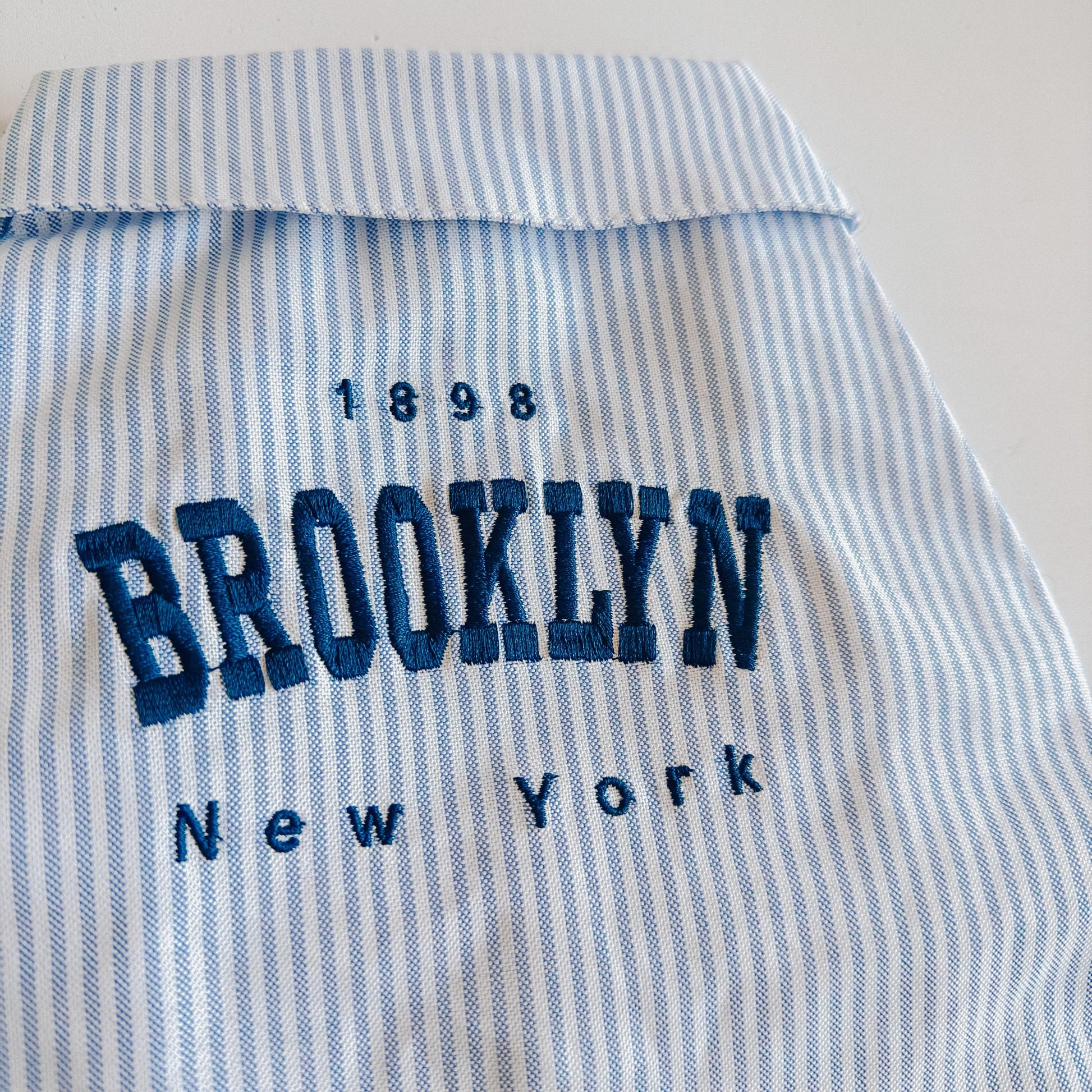 Hermosa camisa a rayas diseño Brooklyn New York, una mezcla entre sofisticado y moderno. Sin duda una prenda atemporal ideal para tu pequeño fashionista.