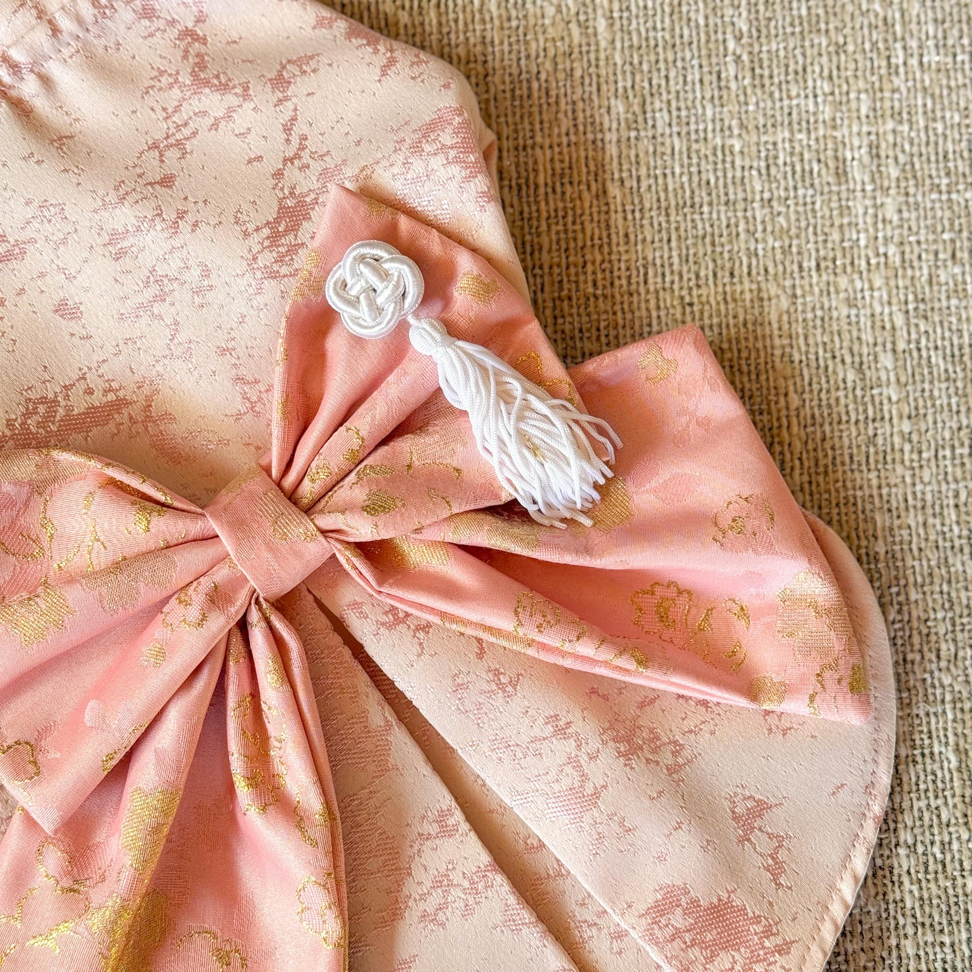 Un disfraz que combina la tradición oriental con la magia de la noche más esperada del año. Este kimono en tono rosa empolvado con delicados acabados dorados transmite elegancia y sofisticación. El gran lazo trasero, con caída impecable y detalle de borla blanca, realza la silueta y aporta un aire de distinción digno de una emperatriz.