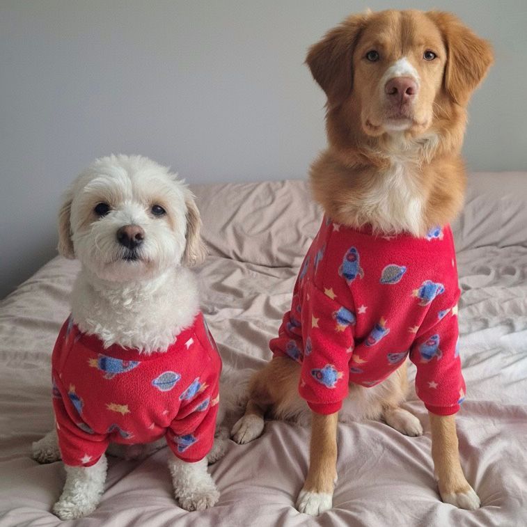 Este peludito rojo con cohetes, estrellas y planetas es ideal para mascotas curiosas y soñadoras que aman explorar el universo (o simplemente el parque). Su tela tipo polar extra suave ofrece abrigo y confort, mientras que el diseño colorido despierta la imaginación con un estilo divertido y encantador. Los bordes elasticados en tono rojo aseguran un ajuste cómodo y práctico. Perfecto para los pequeños astronautas de la casa que quieren mantenerse calentitos sin dejar de brillar.