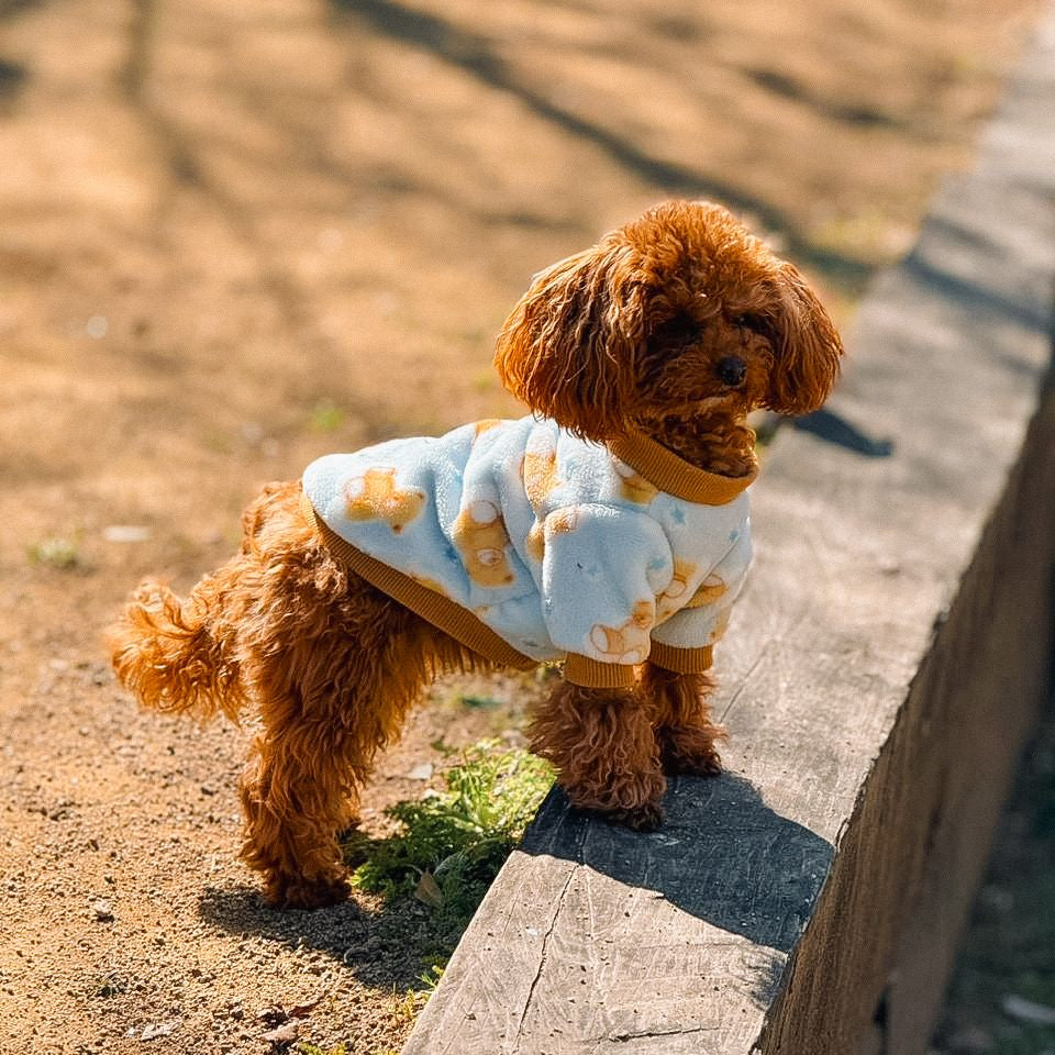 Este tierno peludito es la prenda perfecta para mantener a tu mascota abrigada y adorable durante los días fríos. Hecho con una suave tela afelpada tipo peluche, su diseño encantador muestra ositos durmiendo sobre nubes en un cielo celeste lleno de estrellitas, ideal para transmitir dulzura y calidez.