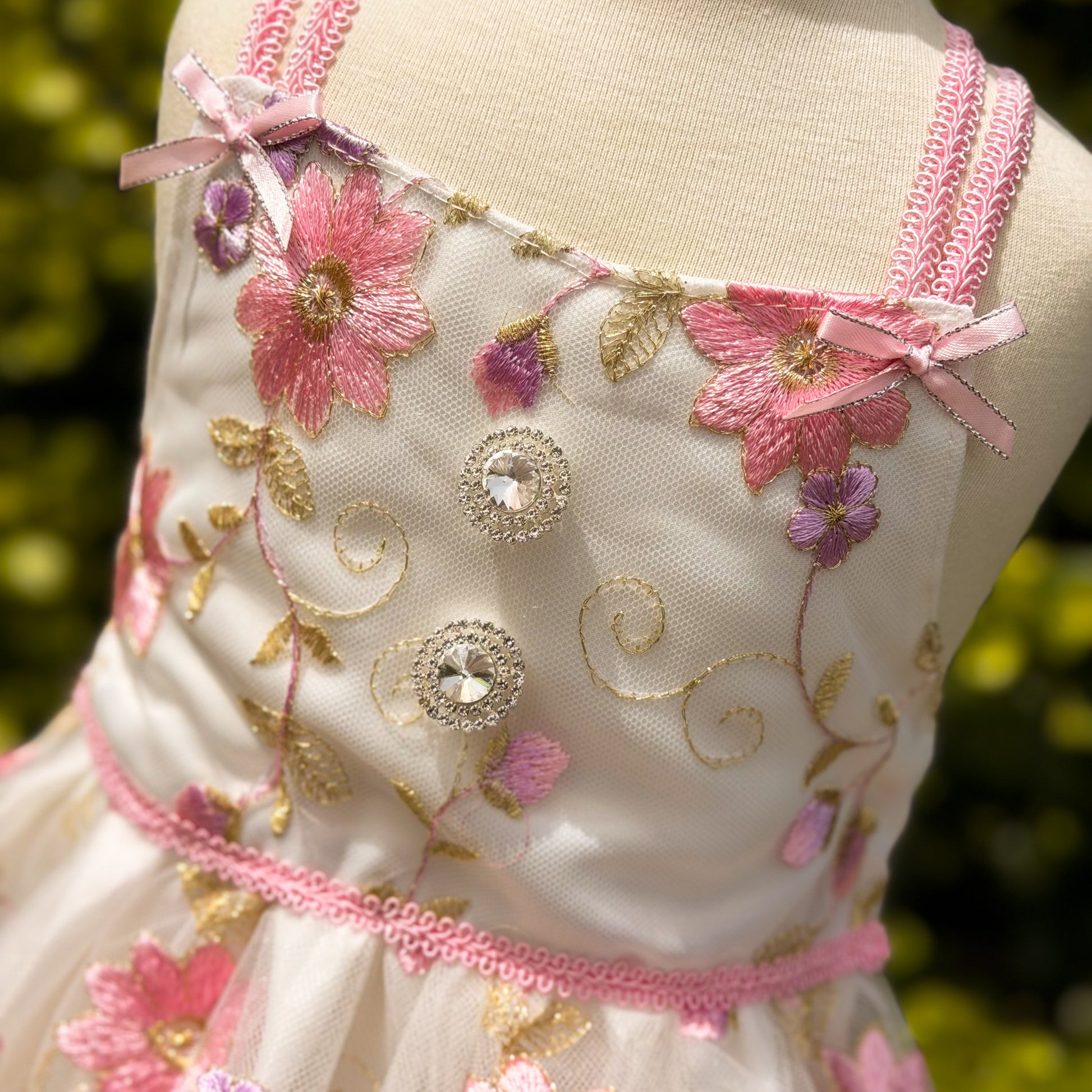 * Tejido Sheer y Ligero: La falda de tul con bordado ofrece una caída suave y una apariencia etérea.